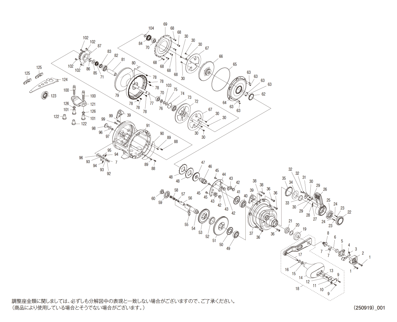 ・シマノ、ダイワのホームページの展開図で、部品番号・部品コードのない部品。