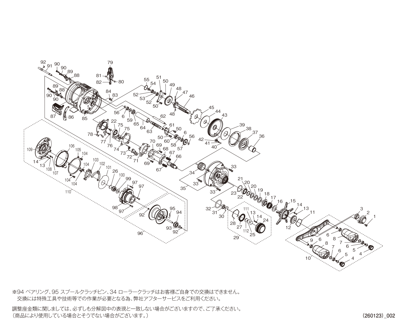 ・シマノ、ダイワのホームページの展開図で、部品番号・部品コードのない部品。
