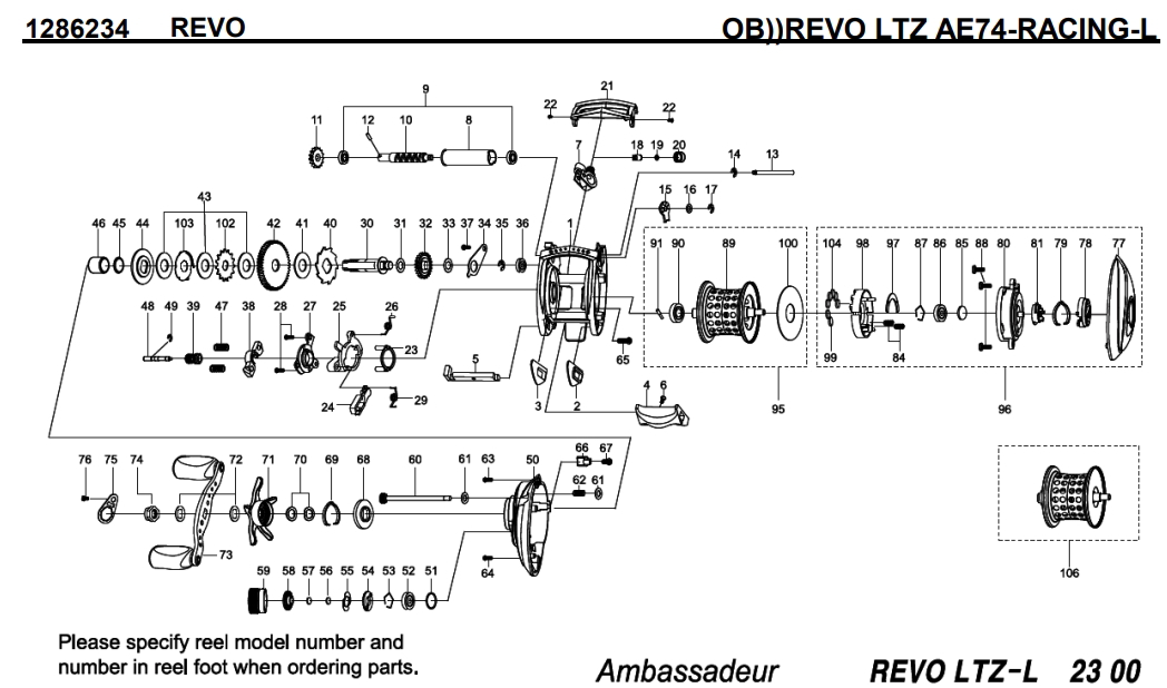 【アブ純正お取り寄せパーツ:納期1ヶ月】Revo LTZ AE74-RACING-L 製品コード:1286234