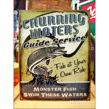 釣りグッズ・インテリア【アメリカンブリキ看板】怪魚のいる水域案内 品番:BS010
