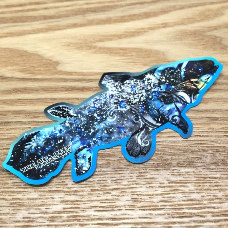 生きてる化石シーラカンス。カラダ全体が宇宙のような模様になっています。
